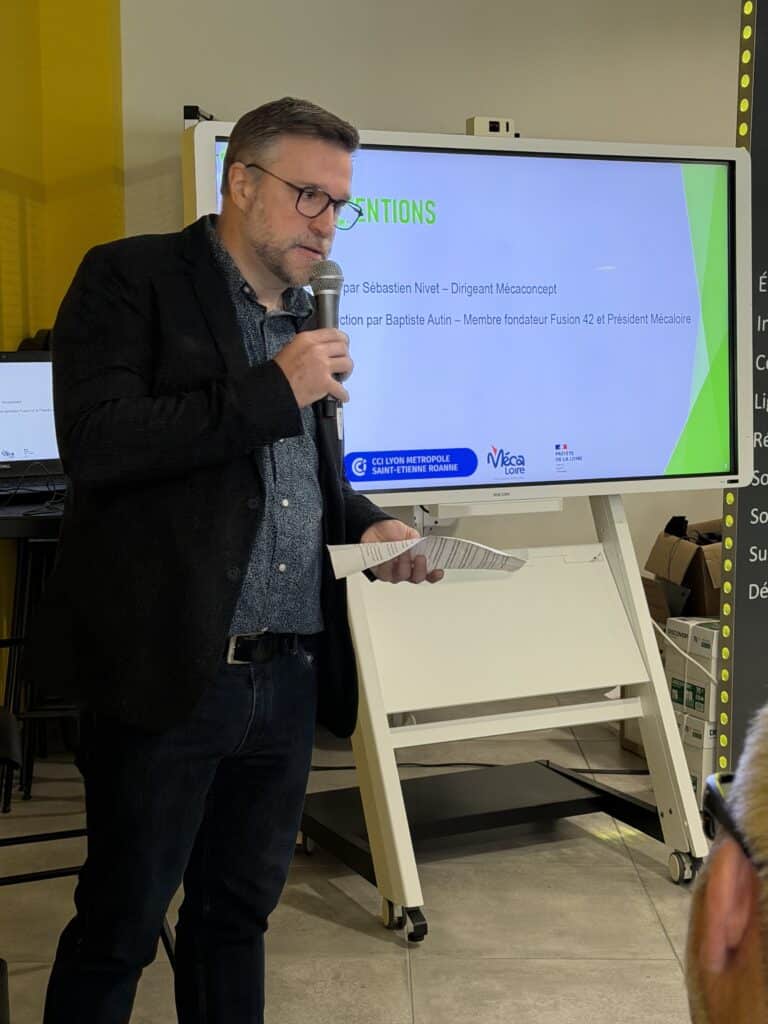 La matinée s’est poursuivie avec l’intervention de Baptiste Autin, président de Mécaloire et membre fondateur de Fusion 42, qui a rappelé le contexte actuel de relance du nucléaire en France.