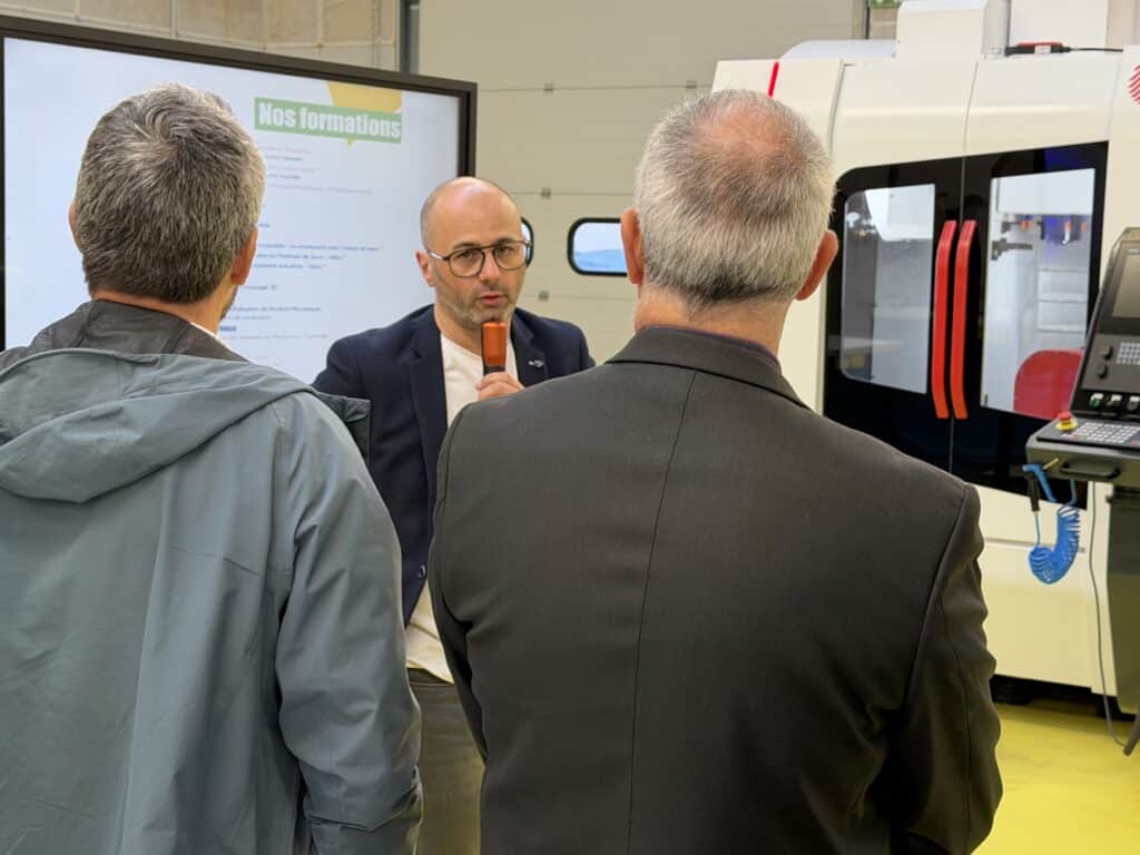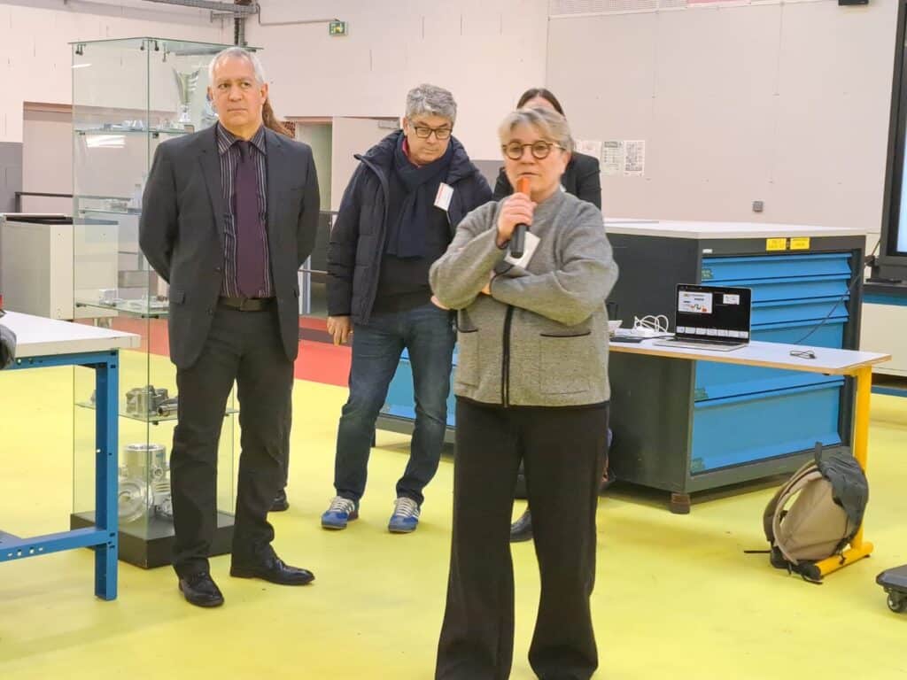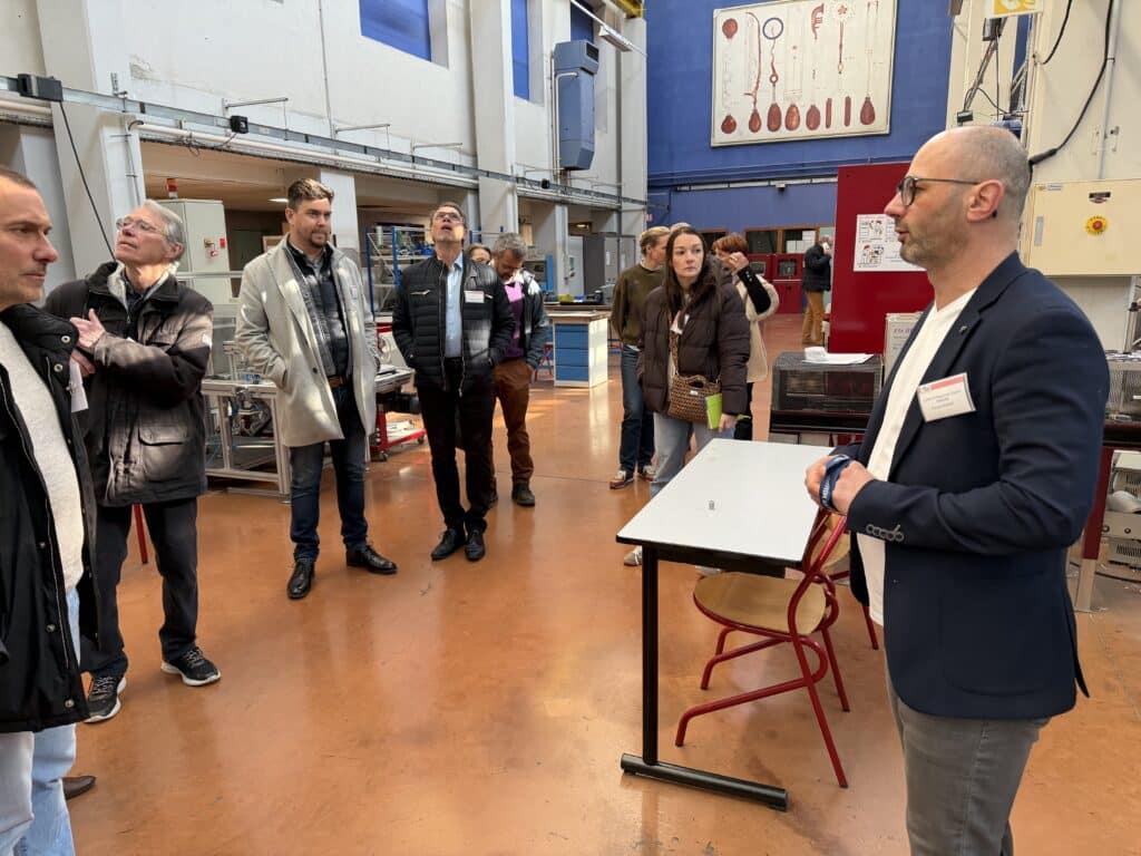 La matinée s’est poursuivie par une visite des plateaux techniques du lycée Étienne Mimard, aux côtés de François Grange. Les participants ont pu découvrir des équipements industriels permettant de former les futurs professionnels dans des conditions proches de la réalité de l’entreprise.